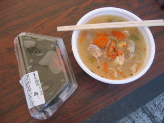 ゴールしてとん汁、おにぎりをいただきました。