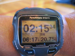 自己計測では2時間15分32秒、記録証も同じでした。