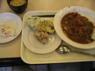 予定通り午前7時に起きて朝食、カレーとおにぎりをいただきました。