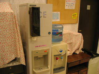 1階の朝食会場には電子レンジ、製氷機もあります。