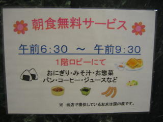 明日の朝食は無料です。