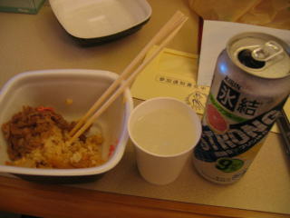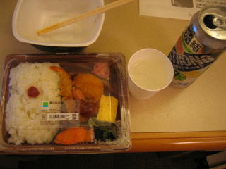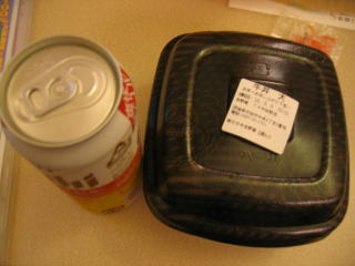 コンビニで幕の内弁当とお酒を買います。