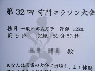 でも、前々回、平成20年に参加したときは16位、58分05秒でしたから約2分遅れです。