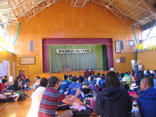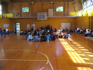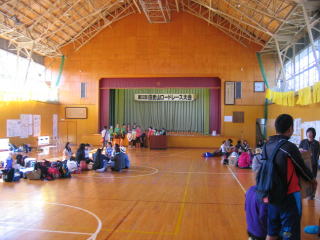参加賞をもらって体育館へ行きます。