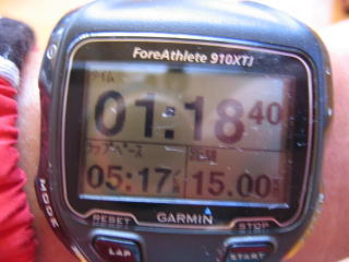 7.5キロまでダラダラ登って折返すコース、5キロ先に急な登りがありますが、全て走って1時間18分、昨年より3秒遅くなりました。