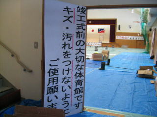 体育館は竣工式前ですが、新築ではなく改築のようです。