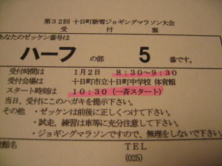 平成23年1月2日 十日町市の「第32回十日町新雪ジョギングマラソン大会」のハーフに参加しました。
