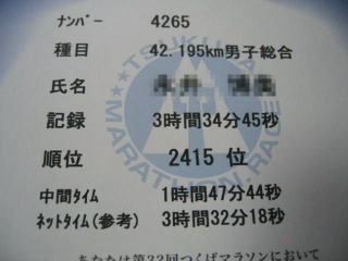 平成24年11月25日 茨城県の「第32回つくばマラソン大会」のフルマラソンに参加しました。
