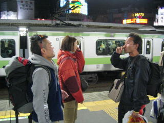 東京都の山手線ホームで騒ぐ、新潟県のマラソンランナー数名。