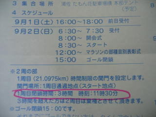 大丈夫と思いますが、一応、1週目関門3時間、最終関門6時間30分を確認しておきます。