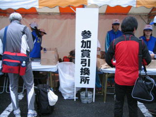 歩いて参加賞をもらいに行きます。