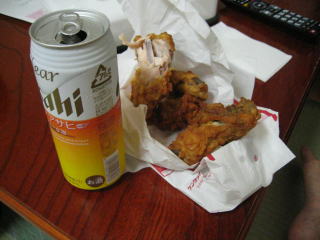 お酒とケンタッキーをいただきながら、ナンバーカードを装着します。