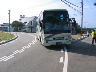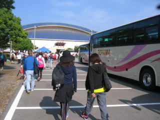 大型バスがたくさんのランナーを運んできます。