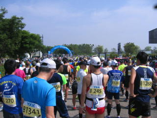 スタートラインまで遠いので午前8時40分に控室を出発します。