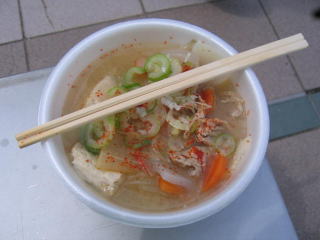 昨年食べ損なった36.5キロエイドでラーメンを3杯いただきました、一口サイズのとても小さいラーメンですがエイドでいただくのは初めて。
