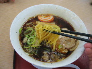 真っ黒いスープ、甘じょっぱい醤油らーめんでした。