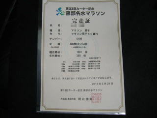 平成28年5月29日 富山県の「第33回カーター記念黒部名水マラソン大会」のフルに参加しました。