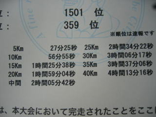 完走証です、5キロラップ、今年は中間点も記録されています。
