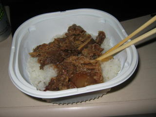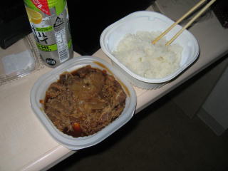 会場への道のりを下見し、コンビニで牛丼を買ってきました。