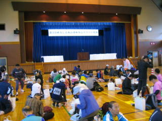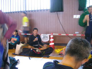 体育館は混んでいますが、隙間を見つけて陣取ります。