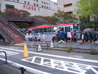 無料シャトルバス乗り場は長蛇の列です。