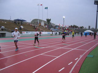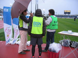 陸上競技場に整列して、市役所前の道路に設けられたスタートまで移動するように変更された様です。