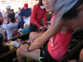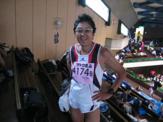 先にゴールの春風さん、余裕の笑顔?で、3時間ちょっとだそうです、同じ年なのですが素晴らしい。