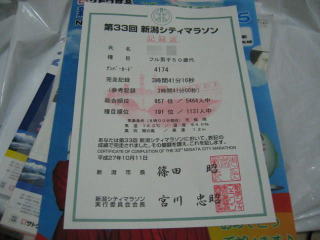 なんと、平成22年10月10日の「第28回新潟シティマラソン大会」以来の完走でした。