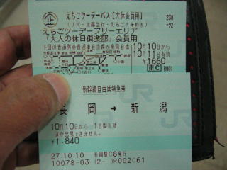 夕方は混みそうなので、土曜日の昼休みに「えちごツーデーパス」と「新幹線自由席特急券」を買っておきました。