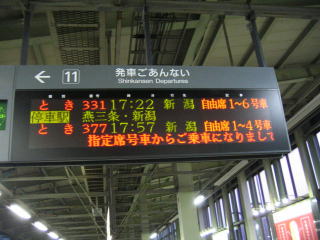 仕事が終わり次第、急いで長岡駅に向かいます、17時22分の新幹線に乗れました。