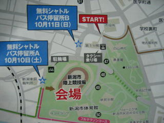 新潟駅南口から無料シャトルバスが出ます、以前参加した時と同じ場所の様です。