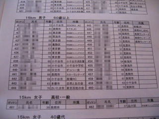 大人では、15キロの男子の50歳以上が一番参加者が多く32名です。