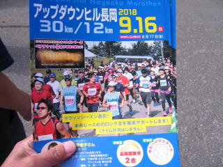 長岡ランナーズ志田会長、金泉副会長が長岡ランナーズ主催の「アップダウンヒル長岡」のパンフレット配りをしているので手伝います。