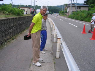 長岡ランナーズの鉄人和田さん、今日は走路員でボランティアの様です。