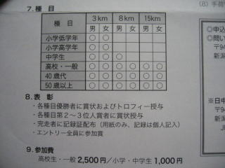 例年通り15キロに参加します、参加費は2.500円です。