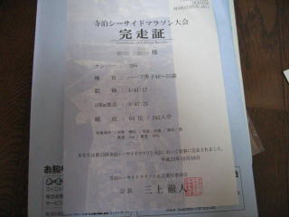 先週はDNSでいただけなかった完走証、努力の証?かな。