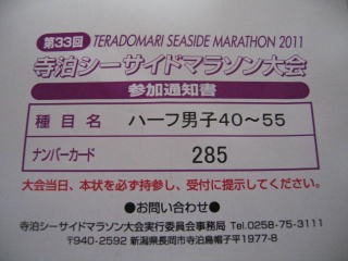 平成23年10月16日 長岡市の「第33回寺泊シーサイドマラソン大会」のハーフに参加しました。