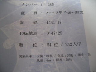 ゴールは1:41:17でしたが足のことを考えれば上出来です。