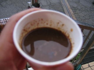 ロビーにあったインスタントコーヒーを自分で入れて、一息ついて出発です。