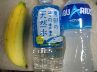 ゴール後にいただいたバナナ、天然水、アクエリアス。