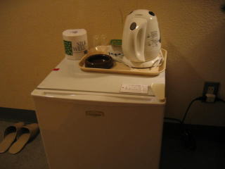 冷蔵庫、湯沸かしポット、小さいながらもテレビあります、部屋が狭いのでテレビも小さくても問題ありません。