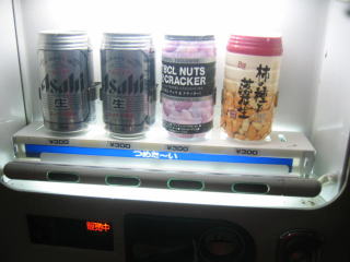 正面玄関側にはお酒やおつまみの自販機があります。