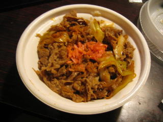 牛丼はお汁も多く甘い味付け、汁だく仕様でした。