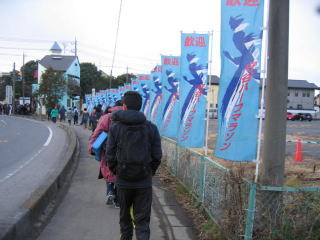午前10時、最後のFブロックからゆっくりスタートです、前半は狭い道にたくさんのランナーで混雑です。