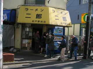 「ラーメン二郎」さんへ来ました、お客さんは並んでいます、が「終了しました」の看板が出ていたので諦めました。