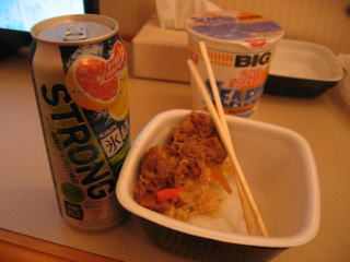 コンビニでお酒500mlを4本、カップ麺を買いました。