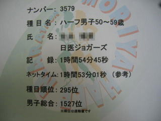 公式記録は1時間54分45秒、最後尾Fブロックからスタートでネット1時間53分01秒でした。
