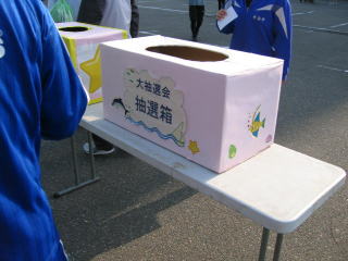「お楽しみ抽選会」の抽選券を抽選箱に入れます。