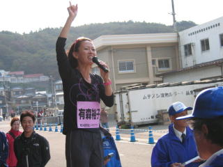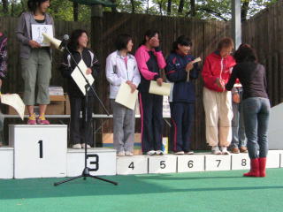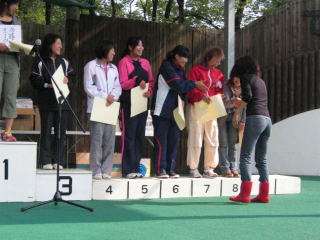 午前11時過ぎから表彰式開始、赤い長靴の有森さんが全ての入賞者に握手して下さいます。