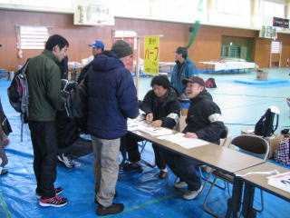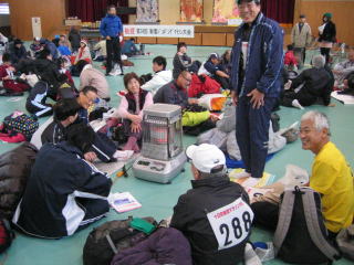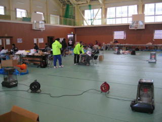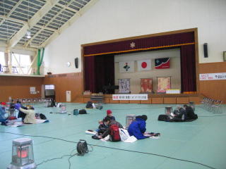 今年は早く来たせいか、体育館は空いていてストーブの前に陣取りました。